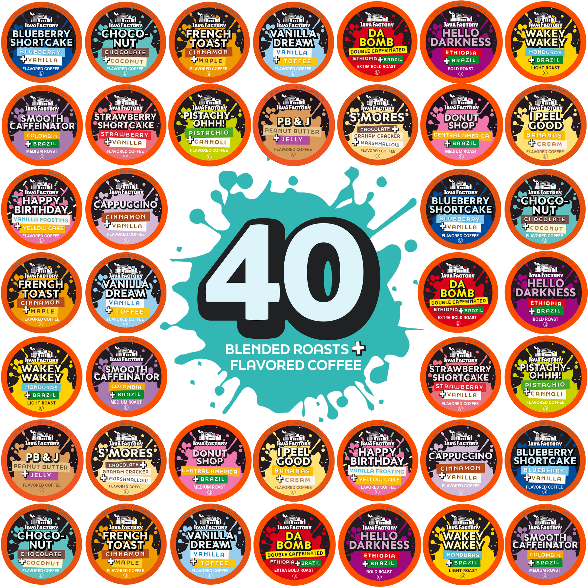 Whether you're into rich dark roasts, creamy blends, or fun flavor twists, this pack lets you explore it all — one cup at a time. Each pod brews a perfect cup with zero hassle, making it the easiest (and tastiest) part of your day. Morning boost, afternoon treat, or late-night sip — whenever you need it, Java Factory’s got your back. Get ready to sip, smile, and discover your new favorite flavor!